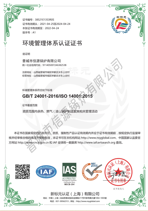 環(huán)境管理體系認(rèn)證證書